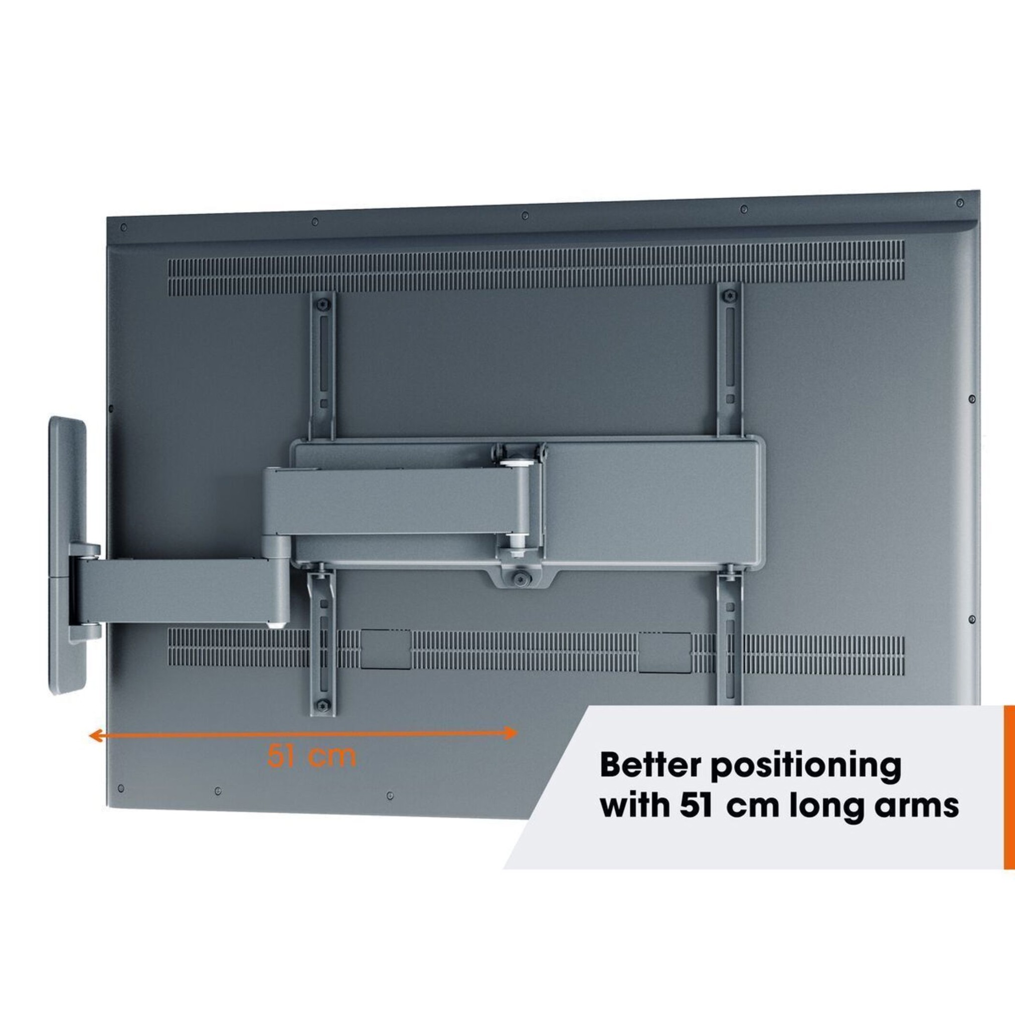 | Vogels TVM 1443 Full-Motion nosač za TV Ektremni TV zidni nosač za televizore od 32 do 65 inča Ovaj QUICK Full-Motion+ TV nosač omogućuje gledanje televizije s gotovo bilo kojeg kuta u prostoriji. Čak i pomicanje vašeg TV-a pod kutom prema zidu nije problem. Nosač se može okrenuti do 180° i nagnuti do 15°. Kao i ostali QUICK TV nosači, QUICK Full-Motion+ TV nosač je brz i jednostavan za instalaciju. Vaš TV možete montirati na zid u maksimalno 30 minuta. Verzija koja je prikazana ovdje odgovara za televizore od 32 do 65 inča i težine do 25 kg. Jednostavna instalacija u maksimalno 30 minuta Sustav EasyFIX QUICK Full-Motion+ TV nosača čini instalaciju vrlo jednostavnom. Instalacija se sastoji od samo tri koraka. TV možete montirati na zid u maksimalno 30 minuta. Nije li montiran savršeno ravno? Nema problema. Možete ga naknadno podesiti čak i nakon što je TV montiran. Vogels olakšava posao Naravno, za montiranje TV-a trebate vijke i tiple. Vogels je sve to osigurao za vas. Svi potrebni montažni materijali uključeni su u pakiranju: vijke i Fischer® DuoPower tiple, kao i predložak za bušenje, libelu i vezice za kablove. Prve rupe za bušenje možete lako označiti pomoću besplatne aplikacije DrillRight. Brzi vodič za instalaciju prikazuje vam korak po korak kako sve montirati. Dostupan je i detaljan online priručnik. Odabrati Vogels znači odabrati sigurnost S Vogels možete biti sigurni da je vaš vrijedni TV čvrsto i sigurno montiran. Svaki QUICK Full-Motion+ TV nosač ima TÜV certifikat i testiran je na tri puta veću težinu od maksimalne nosivosti. Svjesno dizajnirano Ekološki utjecaj ovog proizvoda iznosi 12,6 kg CO2 ekvivalenta. U Vogelsu smatramo važnim poznavati proizvod do najsitnijih detalja. To nam omogućuje da donosimo najbolje dizajnerske odluke za sljedeću generaciju TV nosača. Želite više detalja o utjecaju ovog proizvoda? Pogledajte ekološki list. Okrenite svoj TV do 180° zahvaljujući dugim rukama od 51 cm Sigurno naginjanje do 15° Jednostavno poravnavanje, čak i nakon instalacije Uključene vezice za kablove Besplatna libela uključena EPD Utjecaj ovog proizvoda na okoliš dokumentiran je u Deklaraciji o okolišnim svojstvima proizvoda (Environmental Product Declaration – EPD). Ovu deklaraciju je neovisno validirala organizacija Ecoreview te je usklađena s normom EN 15804. Ovim dokumentom tvrtka Vogel’s na transparentan način pokazuje da je proizvod osmišljen i proizveden na odgovoran način. TÜV certificirano Ovaj proizvod prošao je opsežna ispitivanja kako bi se zajamčila usklađenost sa standardom kvalitete TÜV Nord. Proizvodi tvrtke Vogel’s testirani su da podnose najmanje tri puta veću težinu od navedene maksimalne nosivosti. TÜV NORD je neovisno certifikacijsko tijelo, globalno priznato kao oznaka izvrsne kvalitete. Pojedinosti o proizvodu: EAN: 8712285349409 Boja: Crna Minimalna veličina ekrana (inch): 32 Maksimalna veličina ekrana (inch): 65 Maksimalna nosivost (kg): 25 Maksimalna rotacija: Do 180° Maksimalno naginjanje: Do 15°Raspored rupa (VESA): 100 mm x 100 mm, 100 mm x 200 mm, 200 mm x 100 mm, 200 mm x 200 mm, 200 mm x 300 mm, 300 mm x 200 mm, 300 mm x 300 mm, 400 mm x 200 mm, 400 mm x 300 mm, 400 mm x 400 mm Minimalna udaljenost od zida (mm): 79 Maksimalna udaljenost od zida (mm): 508 Broj točaka zakretanja:3 Sadržaj pakiranja: Nosač za zid, vezice za kablove, komplet za montažu na zid s Fischer® DuoPower tiplama, komplet za pričvršćivanje TV-a, libela, brzi vodič za instalaciju, aplikacija DrillRight, predložak za bušenje Kategorija proizvoda: Full-Motion TV zidni nosač za TV Serija proizvoda: QUICK | |