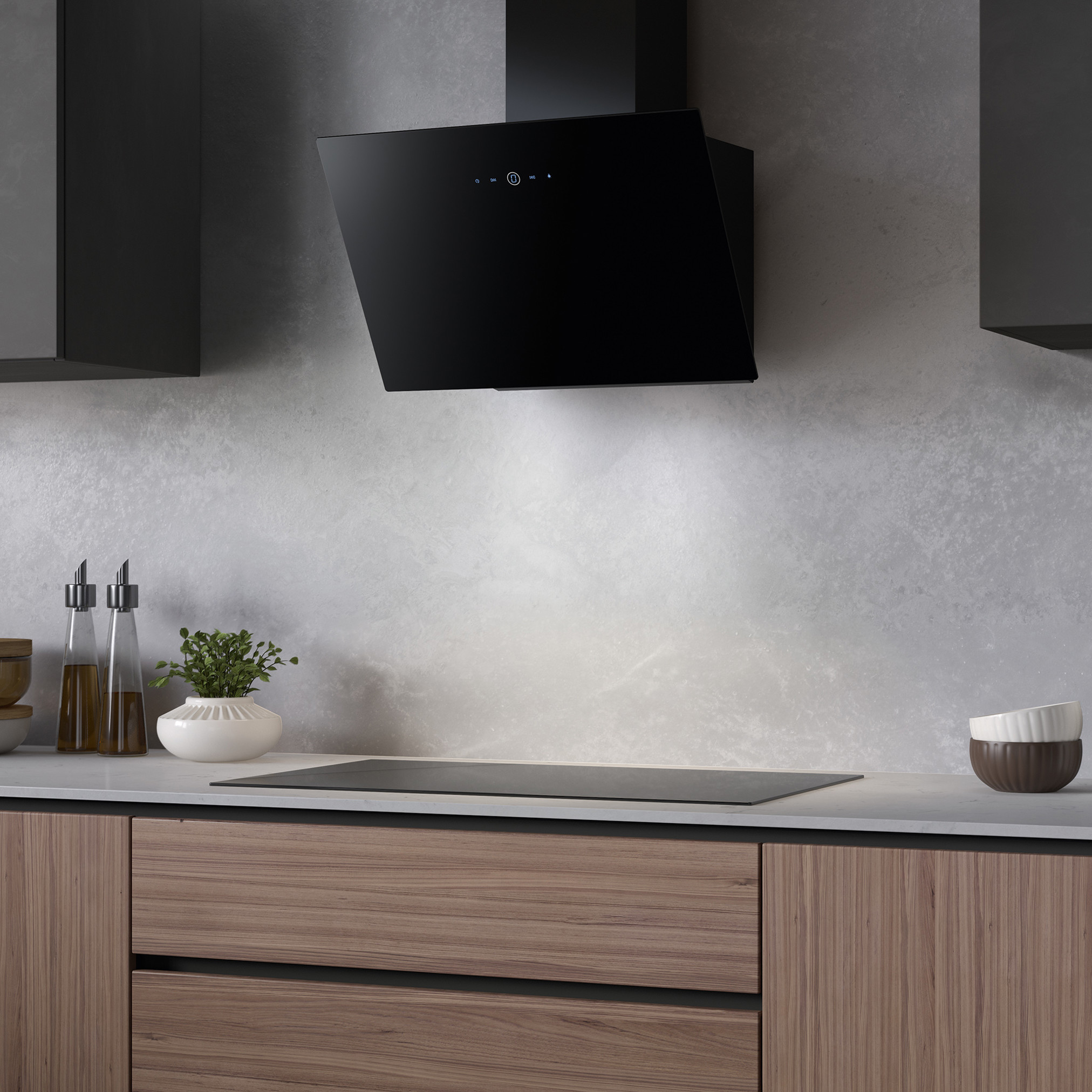 | Materijal i boja Crno staklo Širina (mm) 600 Energetski razred A Upravljanje Touch control Rasvjeta LED Filter masnoće Metalni kasetni perivi filter Promjer odvoda (mm) 150/120 Broj brzina 3 Kapacitet (m3/h) 420-580 Pritisak (Pa) 420-450 Snaga (W) 160-200 Bučnost (dB(A)) 61-67 | |
