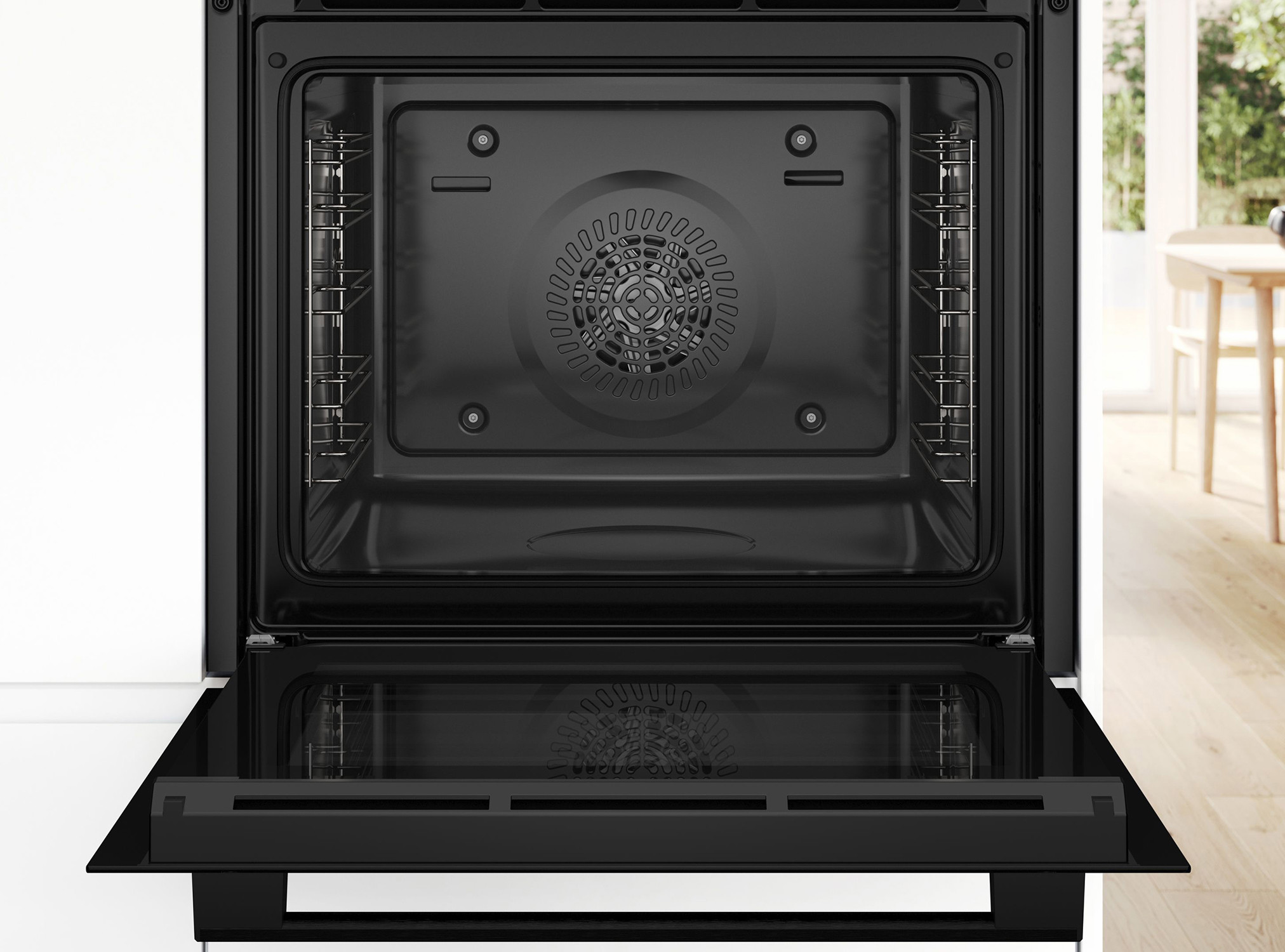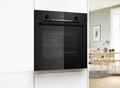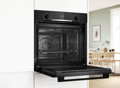 | HBA514BB3 Serie 4, Pećnica, 60 x 60 cm, Crna Pećnica s 7 načina grijanja: 3D vrući zrak, Gornje/donje grijanje, Ventilatorski infra roštilj, Velikopovršinski roštilj, Pizza (opcija za pečenje pizze), Donje grijanje, Blagi vrući zrak Raspon temperature: 50 °C - 275 °C Zapremina: 71 l Broj razina polica: 5 Teleskopske vodilice na izvlačenje može se dokupiti Okretni gumb za upravljanje, Utisni gumb za upravljanje Unutarnja površina: emajlirani antracit Pećnica iznimno velikog kapaciteta Hidroliza (pomoć pri čišćenju) LED zaslon za upravljanje Elektronički tajmer Prikaz trenutne temperature u pećnici Horizontalna ručka Brzo zagrijavanje Halogeno osvjetljenje Ventilator za hlađenje Rešetka, Univerzalna tava za pečenje Vrlo niska temperatura vrata Trojno zastakljenje vrat CoolTouch Dječja sigurnosna brava Dužina kabela za napajanje: 120 cm 220 - 240 V Priključna snaga: 3.4 kW Dimenzije (VxŠxD): 595 mm x 594 mm x 548 mm Dimenzije niše (VxŠxD): 585 mm - 595 mm x 560 mm - 568 mm x 550 mm 2 god.garancije. 3D HotAir Vrući zrak jednoliko raspoređuje toplinu na do tri razine istovremeno, za savršene rezultate pečenja. Sada možete odjednom ispeći cijelu turu keksa na najviše tri razine u jednom cilklusu pečenja. Rotirajući ventilator 3D HotAir brzo i jednoliko raspoređuje temperaturu u cijeloj unutrađnjosti pećnice, na taj način optimalna distribucija vrućeg zraka unutar pećnice je zagarantirana. Zbog toga možete peći i dva različita jela u isto vrijeme, u istoj pećnici. Primjerice, lazanje za ručak i kolač za sutra ispeći će se odjednom, a mirisi i okusi neće se pomiješati. 3D HotAir je integrirana funkcija unutar pećnice koja jamči savršene razultate pečenja a vama olakšava život. Pomoć pri čišćenju Vaša je pećnica samo malo zaprljana i želite je brzo očistiti? Samo postavite približno 400 ml vode i kapljicu deterdženta za posuđe na dno, postavite odgovarajući način zagrijavanja, temperaturu i vrijeme trajanja. Ekološki prihvatljiv sustav čišćenja omekšava zapečene taloge tako da ih možete samo obrisati, za brzo i nekomplicirano čišćenje pećnice. Skočni upravljački gumbi Omogućite jednostavno čišćenje prednje strane pećnice i dajte joj elegantan izgled. | |