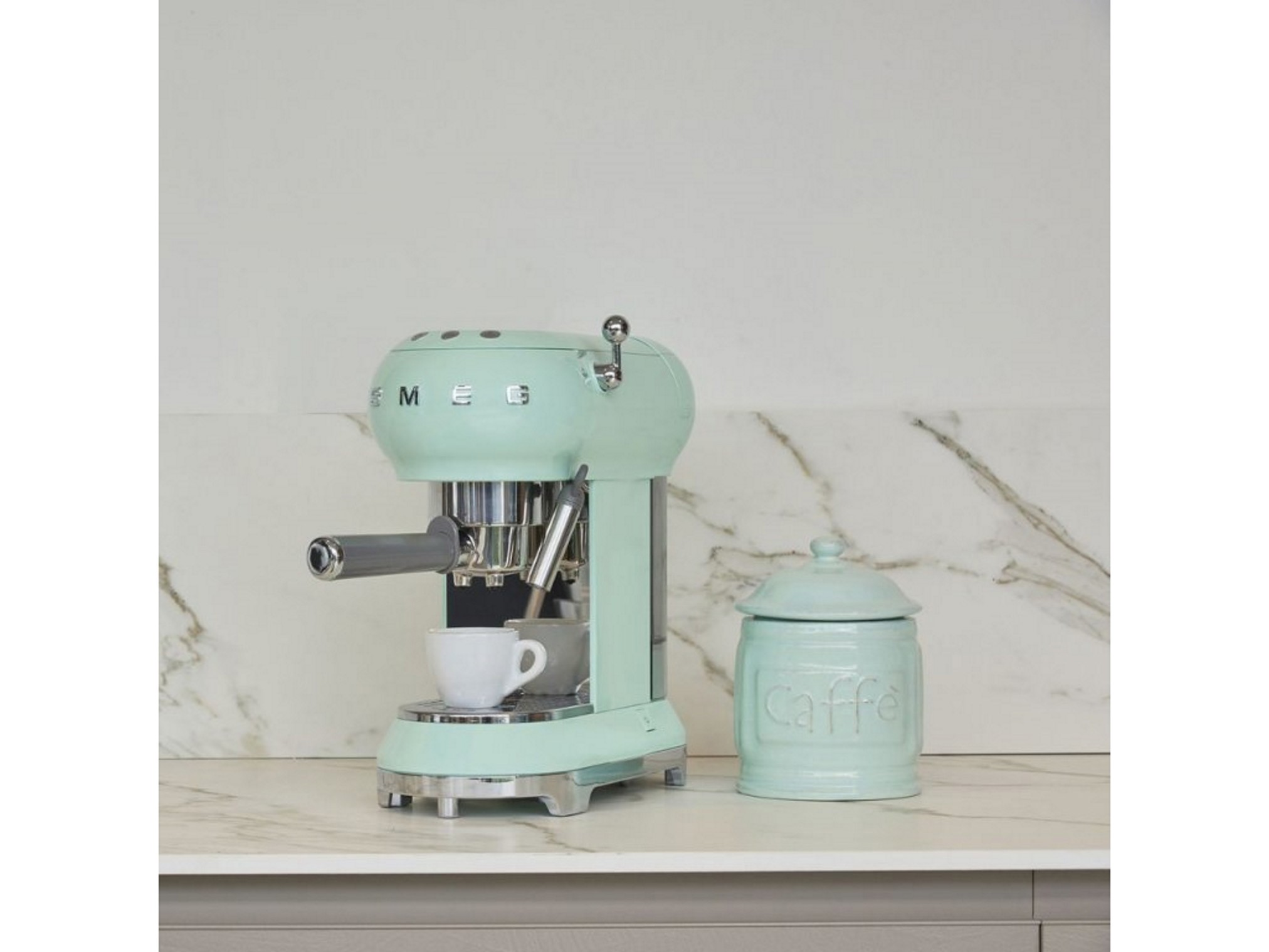 | Boja pastelno zelena Snaga 1350 W Termoblok sustav grijanj Tlak pumpe 15 bara Držač filtera od nehrđajućeg čelika Espresso, dupli espresso i cappucino i cappucino Uklonjiva podloga za velike šalice Odvojivi spremnik za vodu zapremine 1,1 litra Indikator za uklanjanje kamenca | |