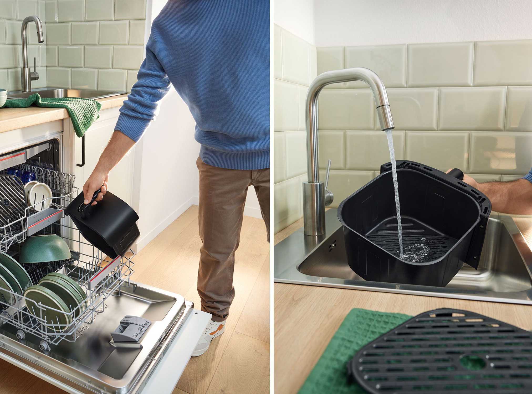 | MAF462B0 Serie 4, Air Fryer, Crna Iskusite tehnologiju prženja na zraku, koja koristi brzu cirkulaciju zraka za kuhanje hrane s svih strana, smeđujući je izvana dok iznutra ostaje sočna. Kuhajte zdravo s Bosch zračnim fritezom jer zahtijevaju ili nikakvo ili vrlo malo ulja zahvaljujući brzoj cirkulaciji zraka. Uživajte u ravnomjerno zapečenoj i hrskavoj hrani zahvaljujući dvostrukom grijaču na vrhu i dnu, koji generira temperature u rasponu od 40 °C do 200 °C, omogućujući brzo vrijeme kuhanja. Veliki kapacitet (6.1L) za do 4 porcije odjednom. 7 unaprijed postavljenih programa za jednostavan i praktičan početak pripreme: pomfrit, meso, perad, ribu, povrće, male kolače i prethodno pečeni kruh. Podesiva temperatura i timer, što omogućuje korisnicima da precizno kuhaju različite namirnice. Funkcija održavanja topline za održavanje kuhane hrane na temperaturi do 80? tijekom pola sata. Funkcija odmrzavanja za odmrzavanje smrznutih namirnica, uključujući meso, povrće i još mnogo toga. Jednostavno čišćenje zahvaljujući kompaktnim dimenzijama košarice i odstranivoj unutarnjoj mreži koja se lako čisti pod mlazom vode. Također je pogodna za pranje u perilici posuđa. Prepoznatljiv Bosch dizajn s modernim izgledom i površinom u mat crnoj boji otpornoj na otiske prstiju. Dodirna zaslona za jednostavno odabir vaših brzih obroka. Standardni pribor uključuje odstranivu mrežu koja potiče cirkulaciju vrućeg zraka oko hrane i sprječava njezino sjedenje u višku ulja. Ima premaz protiv lijepljenja za jednostavnu upotrebu, a također je pogodna za pranje u perilici posuđa i lako se može oprati ručno. 2 godine tvorničkog jamstva Za kupnju ovog proizvoda postoji mogućnost dobivanja WOLT promo koda u iznosu 20€ od 1.10.2025. do 31.3.2025. Rok za prijavu 30 od dana kupnje. | |