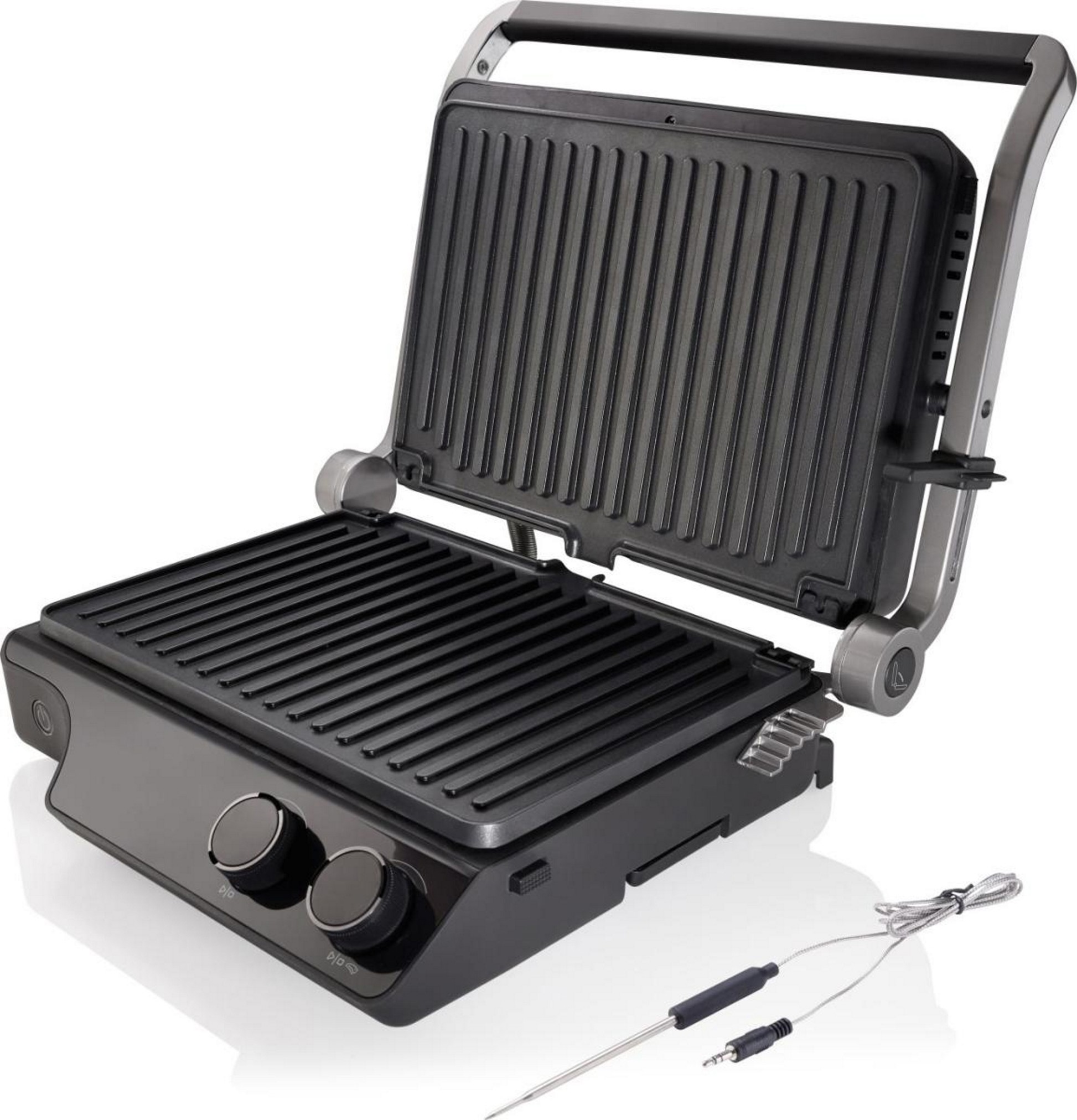 | Materijal ploča: Aluminij Površina pečenja (ŠxV) cm: 34X24 Veličina ploče za pečenje: XXL Tip zaslona: LED zaslon Pokazivač temperature: Da Separate temperature setting for both plates: Da Indikator rada za savršenu kontrolu: Bijeli Premaz ploče za optimalne rezultate: Premaz protiv prijanjanja Namjestiva visina: Da Radni položaj: Otvoren ili zatvoren radni položaj širi mogućnosti uporabe Jednostavno pečenje: Da Ploče za pečenje: Rebrasta ploča za pečenje Ploče: Odvojiva jednostrana ploča Grijač: Konvencionalni grijač Odvodna kanalica i prostor za skupljanje ulja: Da Uključeni dodaci: Posudica za skupljanje viška tekućina Sigurnosno zaključavanje: Da Hladne ručke: Da Nogice za stabilnost: Vakumske nogice za potpunu stabilnost Dužina priključnog kabela: 1005 mm | |