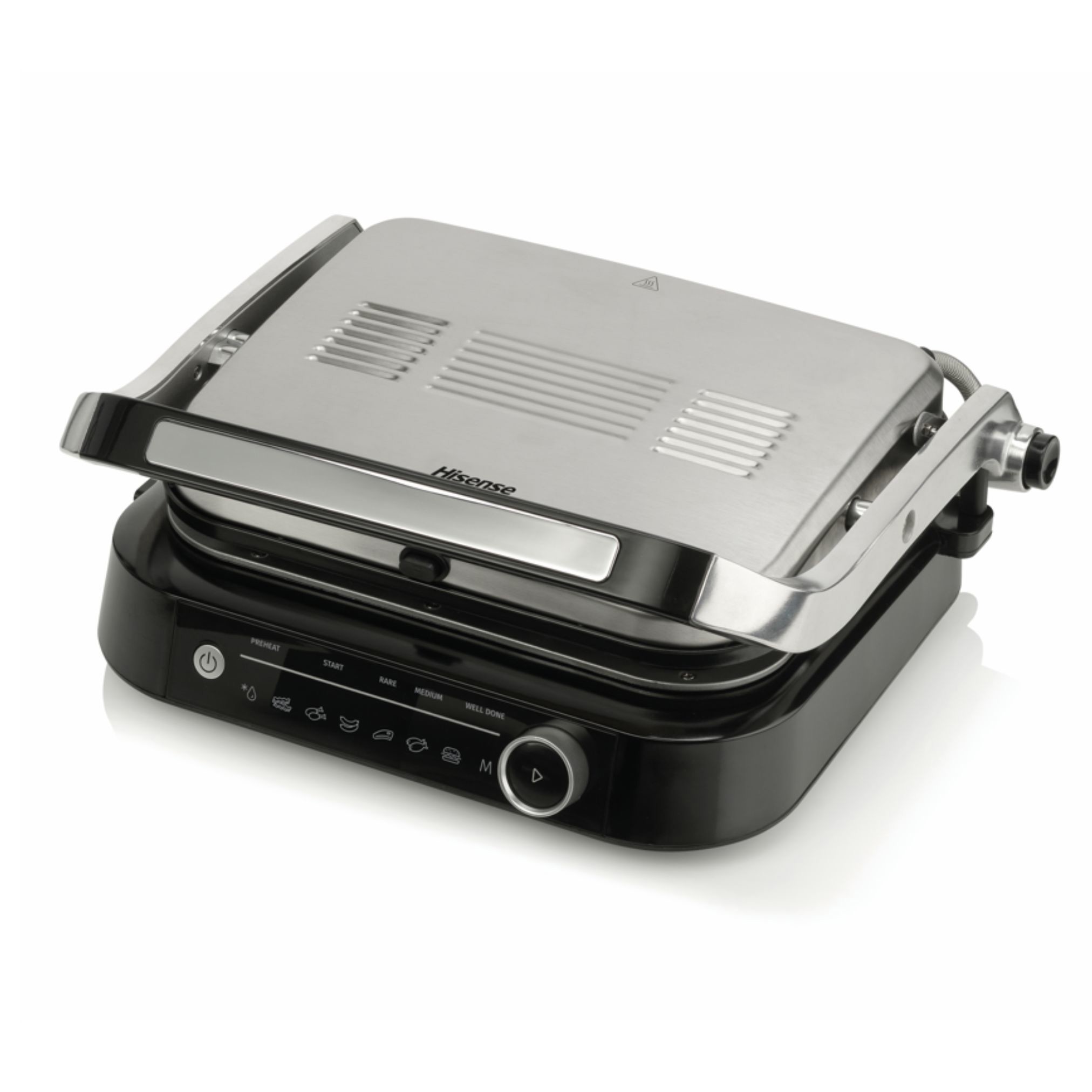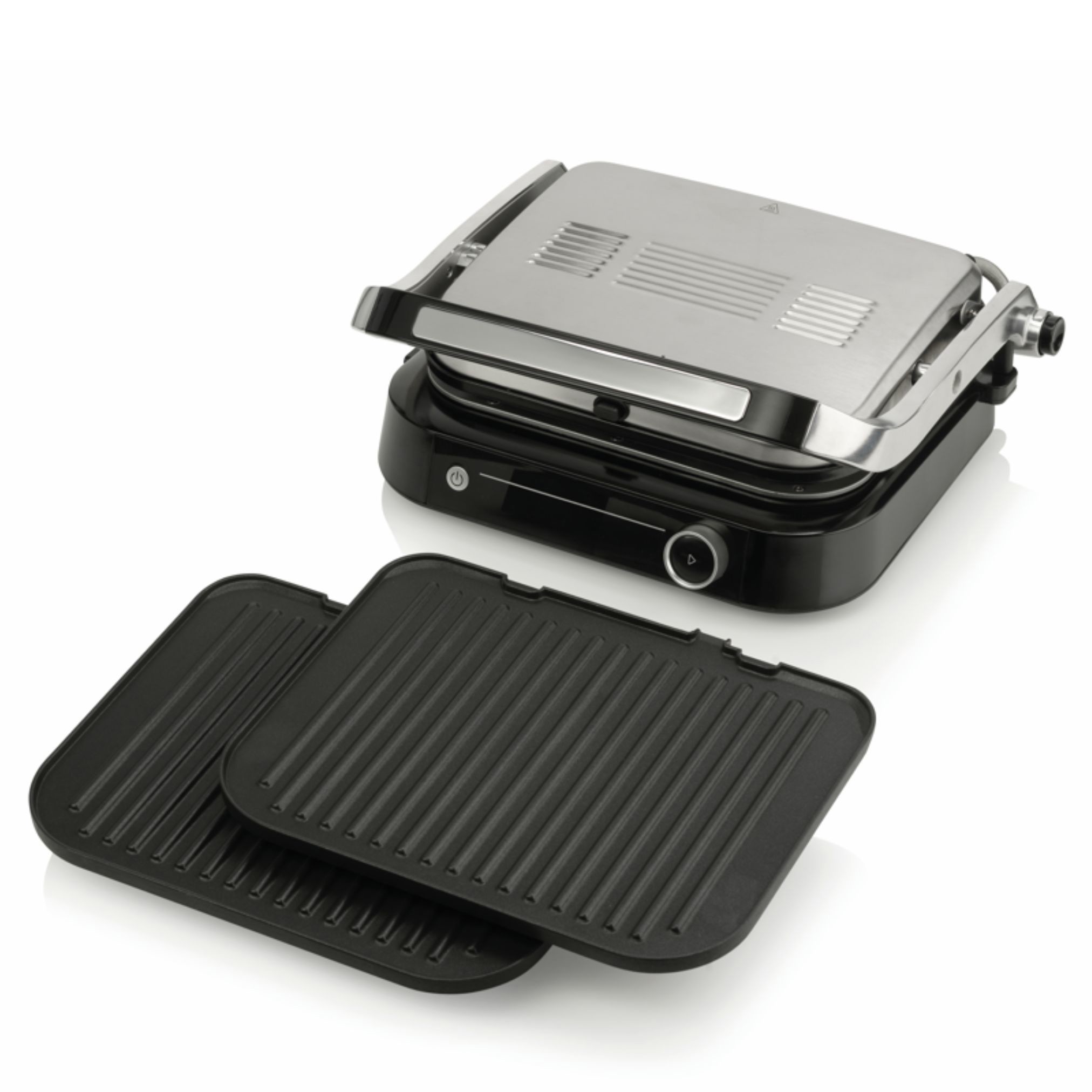 | Općenito Vrsta uređaja: Kontaktni gril Materijal ploča: Aluminij Učinkovitost Snaga grijača: 2100 W Površina pečenja (ŠxV) cm: 31X24 Upravljanje Pokazivač temperature: Da Indikator rada za savršenu kontrolu: Bijeli Broj automatskih programa pečenja: 7 Senzor debljine hrane s automatskim prilagođavanjem vremena pečenja: Da Karakteristike Premaz ploče za optimalne rezultate: Premaz protiv prijanjanja Namjestiva visina: Da Radni položaj: Otvoren ili zatvoren radni položaj širi mogućnosti uporabe Jednostavno pečenje: Da Oprema Promjenljive ploče s obje strane: Ne Ploče za pečenje: Rebrasta ploča za pečenje Ploče: Odvojiva jednostrana ploča Grijač: Konvencionalni grijač Odvodna kanalica i prostor za skupljanje ulja: Da Uključeni dodaci: Posudica za skupljanje viška tekućina Sigurnosni sustavi Hladne ručke: Da Dodaci Pohranjivanje priključnog kabela: Prostor za namatanje priključnog kabela omogućava jednostavno spremanje Nogice za stabilnost: Gumirane nogice za stabilnost Tehnički podaci Dužina priključnog kabela: 1000 mm Širina proizvoda: 380 mm Visina proizvoda: 180 mm Dubina proizvoda: 320 mm Širina zapakiranog proizvoda: 426 mm Visina zapakiranog proizvoda: 220 mm Dubina zapakiranog proizvoda: 384 mm Neto težina proizvoda: 5.2 kg Bruto težina proizvoda: 6 kg Šifra proizvoda: EAN kod: 3838782606267 | |
