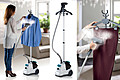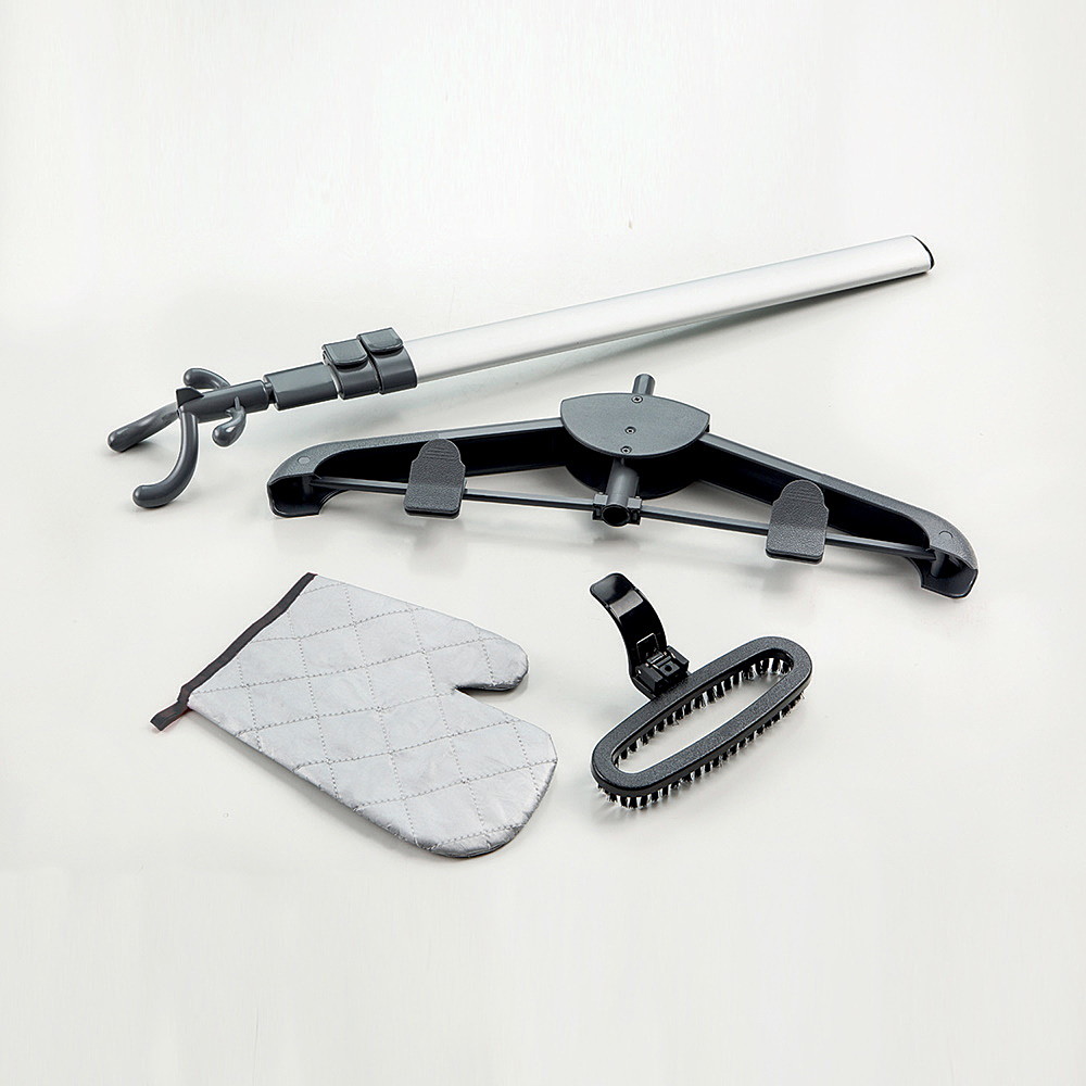 | Snaga 220V-240V / 50-60hZ /~2200W Površina za glačanje od nehrđajućeg čelika 4 razine snage Aluminijski kotao Uklonjivi spremnik za vodu od 3 lit. Protok pare 45 g/min Teleskopski aluminijski stup 4 kotača (2 rotirajuća i dva velika stražnja kotača Nožni prekidač za uključivanje i isključivanje Vrijema grijanja 50” Preklopni stalak za odjeću s kliještima za hlače i suknje Pribor: četka + rukavica | |