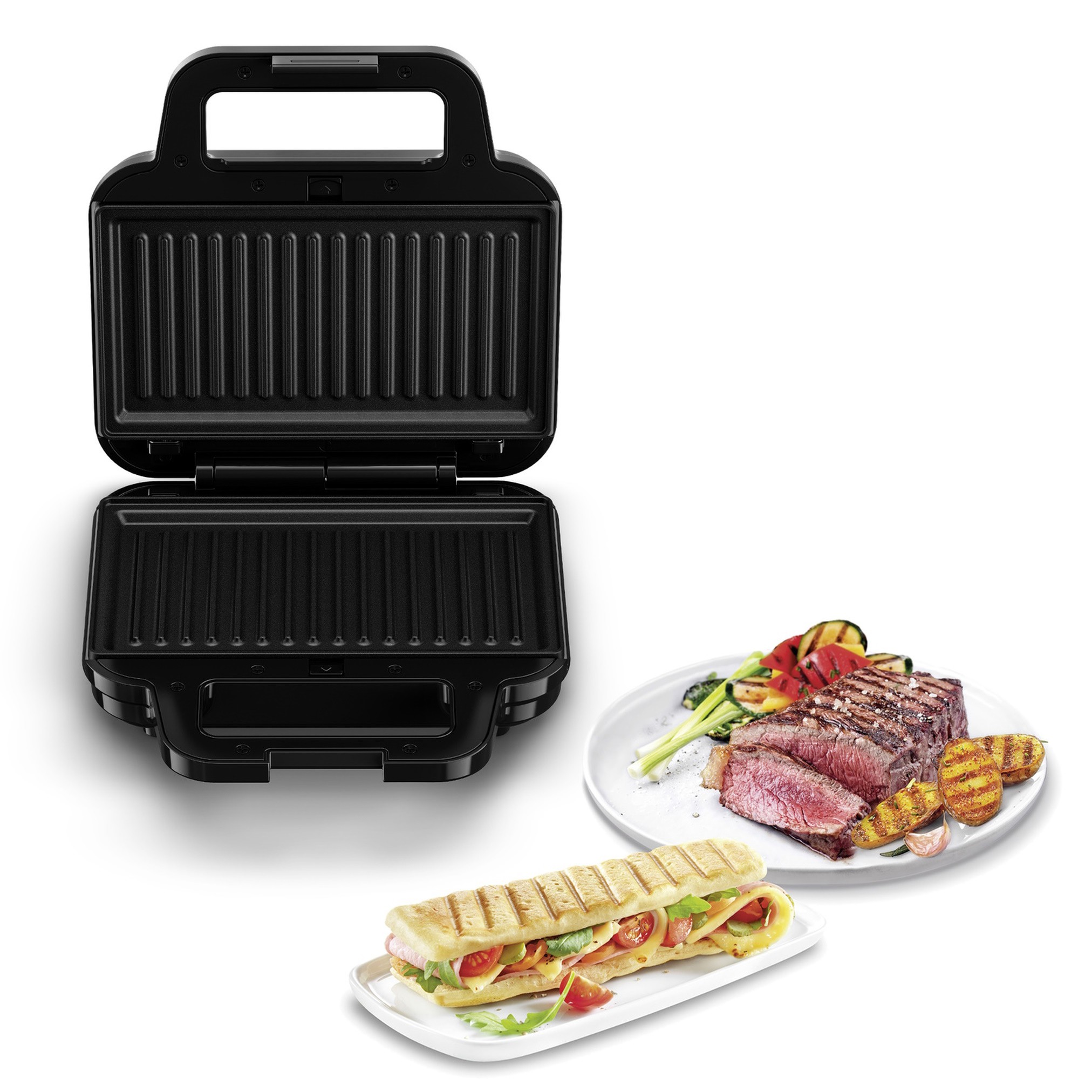 | Uz UltraCompact 3u1 sendvič toster, uživajte u ukusnim obrocima svaki dan. Ovaj multifunkcionalni uređaj kombinira uređaj za vafle, uređaj za sendviče u jednom - za potpunu svestranost i niz ukusnih obroka koje će svi voljeti! S kompaktnim dizajnom koji se lako odlaže, ovaj brzi i moćni uređaj za brze obroke dolazi sa izmjenjivim odvojivim pločama koje se mogu prati u perilici posuđa – čineći UltraCompact 3u1 lakim za čišćenje kao i za uporabu. 3-u-1 uređaj za vafle, sendviče —idealno za brze i jednostavne obroke svaki dan Kompaktan uređaj za obroke koji se lako odlaže za uštedu prostora u vašoj kuhinji. Neprianjajuće ploče za kuhanje bez napora. Ploče koje se mogu ukloniti u perilici posuđa za lako čišćenje. 700 W snage za obroke koji su gotovi u trenu. 3 seta izmjenjivih ploča koje se lako skidaju za potpunu svestranost i široku lepezu ukusnih obroka. Praktične indikatorske lampice koje signaliziraju kada je vaš UltraCompact 3u1 dovoljno vruć da pripremi užinu do kraja | |
