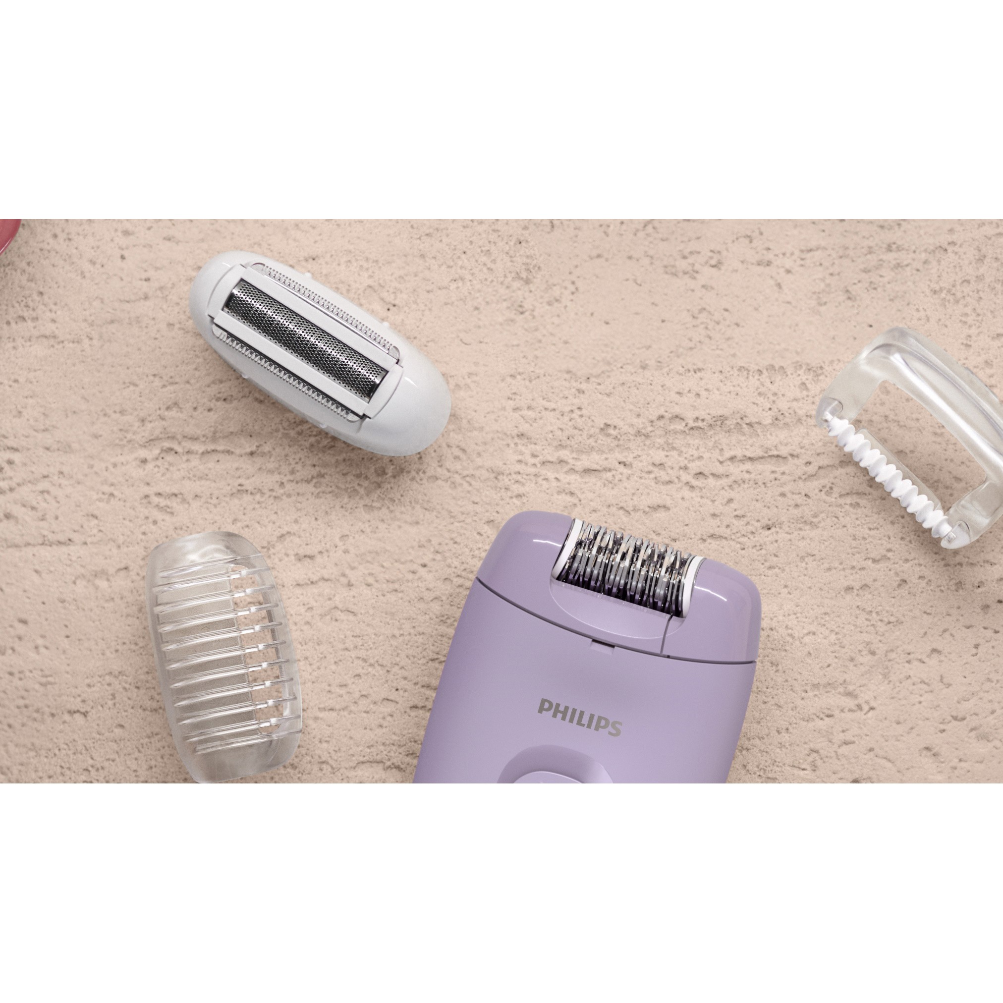 | Nježno uklanjanje dlačica Nježan prema vama i vašoj koži Za tijelo i osjetljiva područja + 2 nastavka Epilacija i brijanje Epilator će vas osloboditi rutine uklanjanja dlačica u trajanju do 4 tjedna. Hvata čak i iznimno kratke dlačice poput onih koje se uklanjanju voskom, a sve to bez zamornih posjeta salonu ili stvaranja nereda Dodatna oprema: Četka za čišćenje Kapica za masažu Glava za brijanje s češljem | |